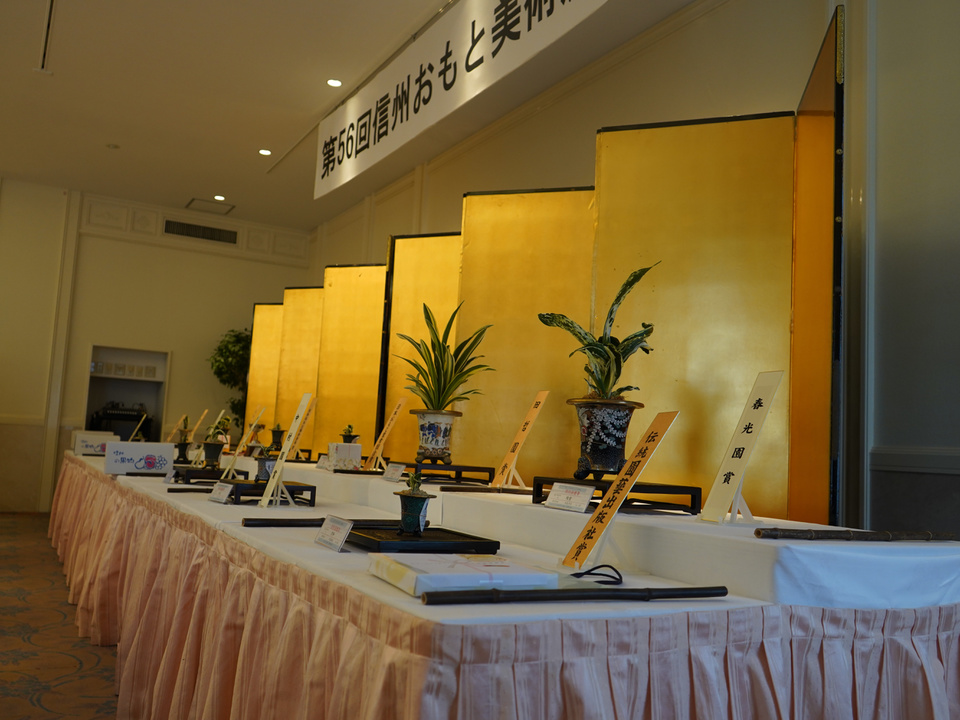 ◇秋には会員の名作品を持ち寄りその成果を競い、一般にPRを行う、信州おもと美術展を開催します。